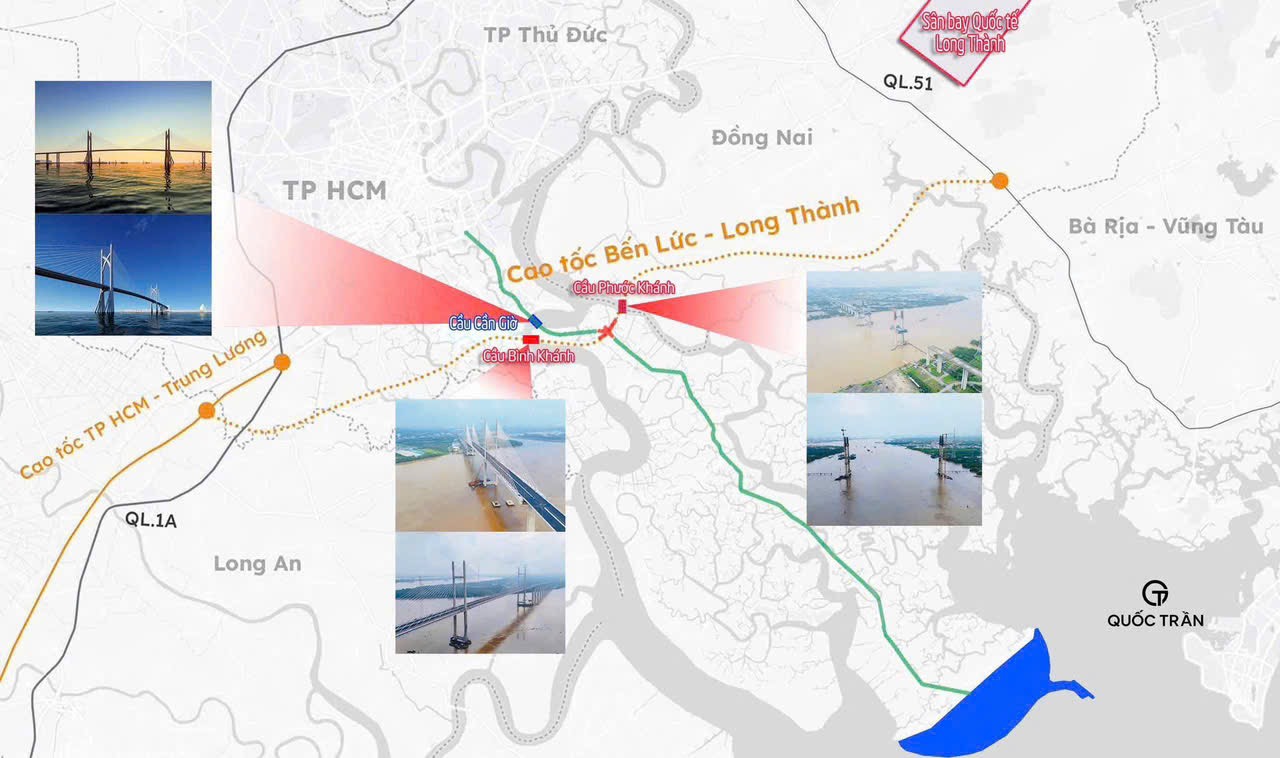 Tiếp nối Bình Khánh, cầu Phước Khánh – dự kiến hoàn thành vào tháng 9/2026 – được coi là mắt xích quan trọng để kết nối trực tiếp Sân bay quốc tế Long Thành với Cần Giờ. Đây là cây cầu dây văng vượt sông lớn nhất Việt Nam tính đến thời điểm hiện tại.